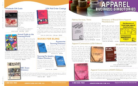 This up-to-date directory lists apparel and accessory manufacturers, exporters and contractors from