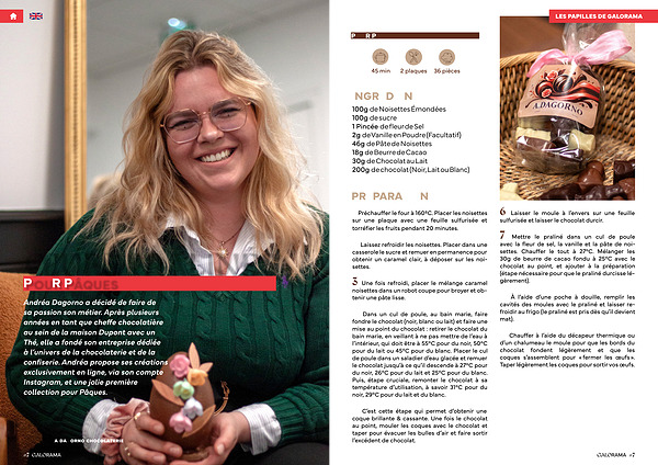7 Mettre le praliné dans un cul de poule avec la fleur de sel, la vanille et la pâte de noisettes. Chauffer le tout à 27°C. Mélanger les 30g de beurre de cacao fondu à 25°C avec le chocolat au point, et ajouter à la préparation (étape nécessaire pour que le praliné durcisse légèrement).