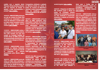 11/10/13 – SINDOJUS/MG noticia a participação de sua vice-presidente, Ana Luíza Carneiro, em mais uma reunião na Comissão Paritária de Assédio Moral, do TJMG, para tratar da regulamentação de proposta a ser encaminhada à direção do Tribunal.