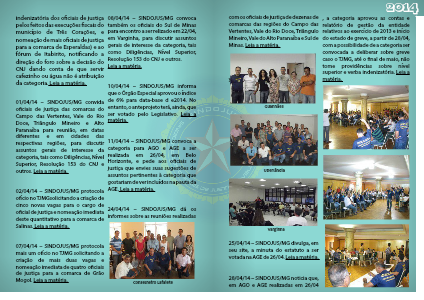 , a categoria aprovou as contas e relatório de gestão da entidade relativos ao exercício de 2013 e início do estado de greve, a partir de 28/04, com a possibilidade de a categoria ser convocada a deliberar sobre greve caso o TJMG, até o final de maio, não tome providências sobre nível superior e verba indenizatória. Leia a matéria.