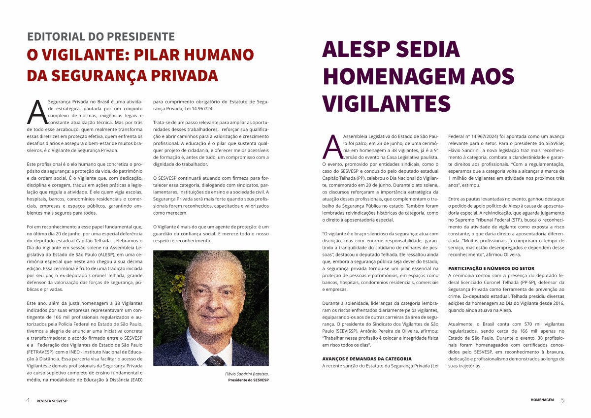 O SESVESP continuará atuando com firmeza para fortalecer essa categoria, dialogando com sindicatos, parlamentares, instituições de ensino e a sociedade civil. A Segurança Privada será mais forte quando seus profissionais forem reconhecidos, capacitados e valorizados como merecem.
