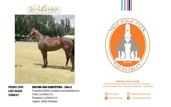 DOLFINA B09 CUARTETERA - Clon 9 Fundadora Dolfina Cuartetera ( Lambada / Sportivo ) Criadr : La Dolfina S . A . Propietario : La Dolfina S . A . Jugador : Adolfo Cambiaso