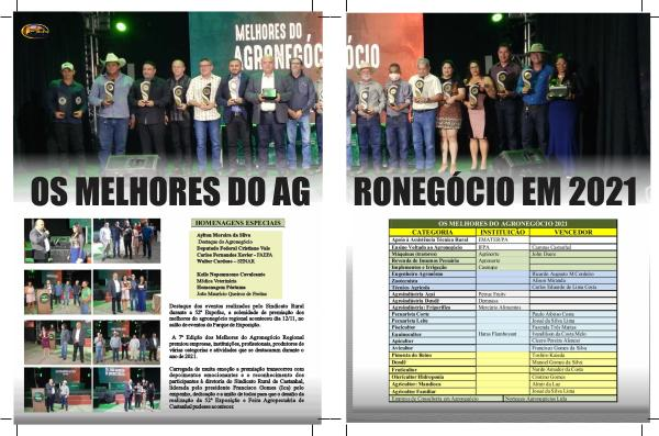 A 7 ª Edição dos Melhores do Agronegócio Regional premiou empresas , instituições , profissionais , produtores de várias categorias e atividades que se destacaram durante o ano de 2021 .