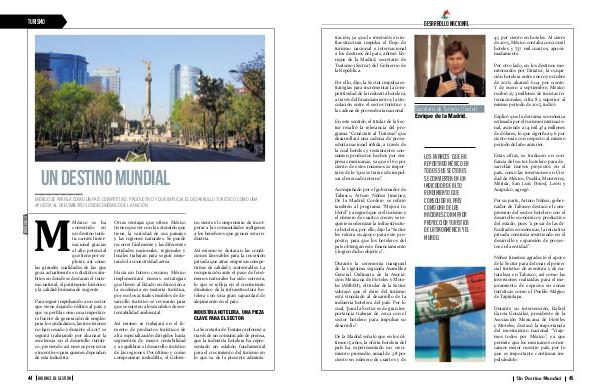 tración, ya que la inversión en infraestructura impulsa el flujo de turismo nacional e internacional a los destinos del país, afirmó Enrique de la Madrid, secretario de Turismo( Sectur) del Gobierno de la República.