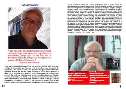 O que falar do Ademar José Gevaerd? Ele é o tipo de pesquisador que dispensa comentário. Mas mesmo assim, irei comentar (muitos que irão ler talvez ainda não o conheça). O entrevistado Ademar Gevaerd, ou simplesmente Gevaerd, sem sombras de dúvidas é o maior representante não só da Ufologia brasileira, mas sim de toda a América. O mesmo é um dos maiores pesquisadores do fenômeno UFO na Terra, e um dos maiores se não o maior divulgador da pesquisa ufológica, conferencista ativo que viaja o mundo inteiro juntando o maior número de provas possíveis para provar a veracidade que somos visitados por seres extraterrestres. Antes de se dedicar ao estudo da Ufologia, Gevaerd foi professor de química (que é uma disciplina na qual sempre gostou muito).