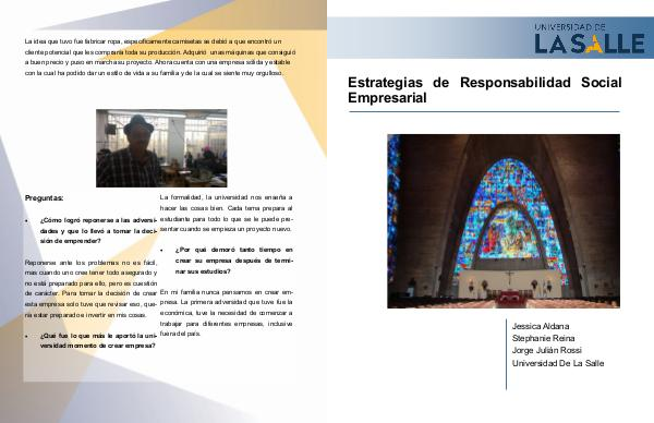 Estrategias de Responsabilidad Social Empresarial Jessica Aldana Stephanie Reina Jorge Julián Rossi Universidad De La Salle