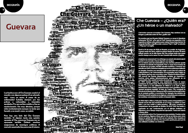 Las opiniones sobre Che Guevara son muy variadas. Puedes verlas en los cuadros. Algunos dicen que el Che es un héroe, pero otros tienen la opinión de que el Ché era un malvado. Eso muestra el carácter complicado del Che. Por una parte quería paz, pero por la otra utilizaba medidas con violencia.