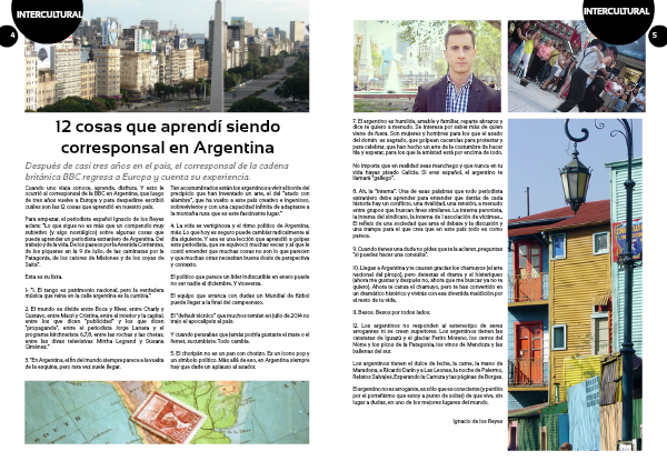 Para empezar, el periodista español Ignacio de los Reyes aclara: “Lo que sigue no es más que un compendio muy subjetivo (y algo nostálgico) sobre algunas cosas que puede aprender un periodista extranjero de Argentina. Del trabajo y de la vida. De los paseos por la Avenida Corrientes, de los piquetes en la 9 de Julio, de las caminatas por la Patagonia, de los calores de Misiones y de los coyas de Salta”.