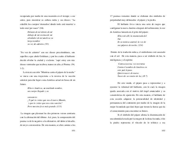 recuperada por medio de una incursión en el tiempo; a ese antes, para encontrar su cultura india y sus dioses: " La edad / de los cuerpos / desnudos / donde todo está muerto / o todo esta / por nacer "( 84).