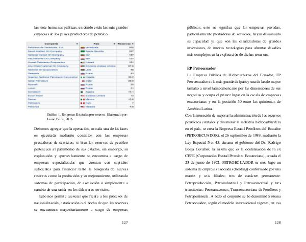 públicas, esto no significa que las empresas privadas, particularmente prestadoras de servicios, hayan disminuido su capacidad ya que son las canalizadoras de grandes inversiones, de nuevas tecnologías para afrontar desafíos más complejos en la explotación de dichas reservas.