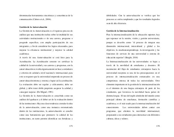 Gestión de la Autoevaluación La Gestión de la Autoevaluación es el riguroso proceso de análisis que una institución realiza sobre la totalidad de sus actividades institucionales o de una carrera, programa o posgrado específico, con amplia participación de sus integrantes, a fin de considerar los logros alcanzados, para mejorar la eficiencia institucional y mejorar la calidad académica. A través de una Autoevaluación se está listo para la Acreditación. La Acreditación consiste en certificar la calidad de la universidad y sus carreras y programas, con la autoevaluación se evalúa rigurosamente en base a estándares y criterios de calidad a nivel nacional e internacional, para esto se requiere que la universidad emprenda un proceso de autoevaluación interna y externa y lograr así la acreditación. La evaluación debe ser regular y cíclicamente, debe ser global, y debe tener doble propósito asegurar la calidad y conseguir mejorar.( De Miguel, 1991) La Gestión de la Autoevaluación es concebida como un análisis del quehacer y el deber ser de la evaluación dentro de las instituciones. Hay una clara tendencia a instalar la idea de la autoevaluación, como una instancia sistematizada dentro de las instituciones, la autoevaluación se concibe como una herramienta que promueve la calidad de las instituciones, en tanto permite identificar sus fortalezas y