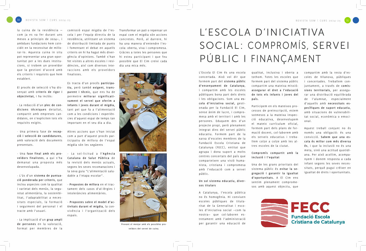la cuina de la residència— com ja es va fer durant uns mesos a principis de 2024—, i ambdues fundacions hem coincidit en la necessitat de millorar-lo. Aquesta cuina in situ pot representar una gran oportunitat per a les dues institucions, si trobem un proveïdor que la gestioni d’ acord amb els criteris i requisits que hem establert.