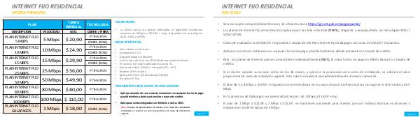 • La oferta básica de planes enfocados al segmento residencial empieza en 5Mbps a $ 20,90 + imp, disponible en tecnologías: ADSL, VDSL y GPON,