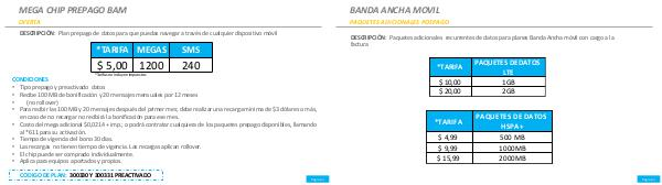 DESCRIPCIÓN: Paquetes adicionales recurrentes de datos para planes Banda Ancha móvil con cargo a la