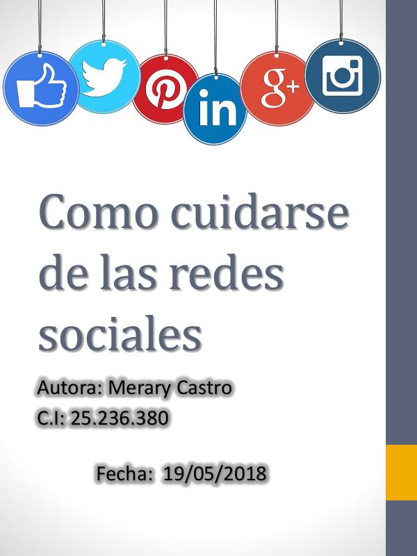 Como cuidarse de las redes sociales Autora: Merary Castro C.I: 25.236.380 Fecha: 19/05/2018