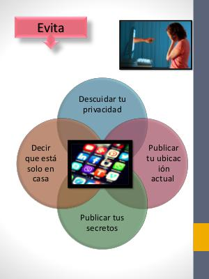 Evita Descuidar tu privacidad Decir que está solo en casa Publicar tu ubicac ión actual Publicar tus secretos