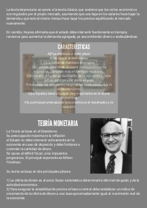 La Teoría se basa en el liberalismo Su preocupación máxima es la inflación el Estado no debe intervenir activamente en la economía en caso de depresión y debe limitarse a controlar la cantidad de dinero Se opuso al déficit fiscal, a los impuestos progresivos. El principal exponente es Milton Friedman.