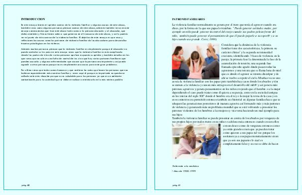 Considera que la dinámica de la violencia familiar tiene dos características, la primera su carácter clínico i y la segunda su intensidad creciente, identificando 3 fases de violencia en la pareja; la primera fase la denominada la fase de la acumulación de tensión; una segunda fase llamada episodio agudo donde pasan todas las agresiones y una tercera que se llama luna de miel que es donde el agresor se intenta disculpar y de ahí se vuelve a repetir el ciclo. Muchas veces uno asocia la violencia familiar con los papas pero también hay casos donde los abuelos y tíos se suman a la violencia y causan más estragos en el desarrollo del niñ @ y así genera más patrones agresivos y genera pensamientos en los niños creyendo que el hombre o a la mujer dependiendo el caso puede tratar como él quiera a su pareja, como en la sociedad antigua en los inicios del siglo XX ii donde el hombre era el rey o la mujer la reina de la casa y en esos contextos era permitido entonces también ese historial en algunas familias hace que se eduquen las generaciones posteriores de manera agresiva así formando más y más patrones de violencia y generando más un problema mundial que se está volviendo a presentar los patrones violentos de los hombres a las mujeres y viceversa haciendo un mal ejemplo para sus hijos También la violencia familiar se puede presentar en contra de los abuelos por venganza de sus propios hijos por malos tratos en su niñez o adolescencia entonces cuando crecen ellos con un deseo como de venganza entonces como ya están grandes creen que ya pueden tratar como quieren a sus papas tal vez porque los sostienen ya a sus papas monetariamente creen que ya son sus juguetes lo cual es completamente falso y eso no se debe de hacer.