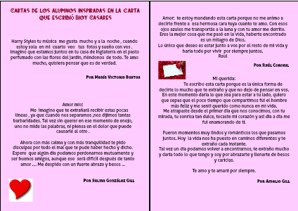 Amor: te estoy mandando esta carta porque no me animo a decirte frente a esa hermosa cara tuya cuanto te amo. Con esos ojos azules me transportás a la luna y con tu amor me derrito. Eres la mejor cosa que me pasó en la vida, haberte encontrado es un milagro de Dios.