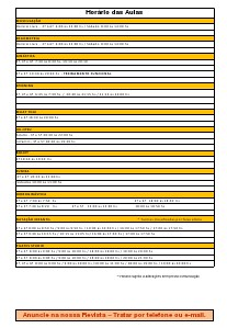 2ª e 4ª 8:00 às 9:00 hs / 9:00 às 10:00 hs / 18:00 às 19:00 hs / 19:00 às 20:00 hs