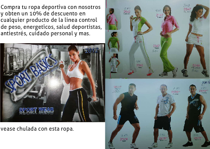 Compra tu ropa deportiva con nosotros y obten un 10% de descuento en cualquier producto de la linea control de peso, energeticos, salud deportistas, antiestrés, cuidado personal y mas.