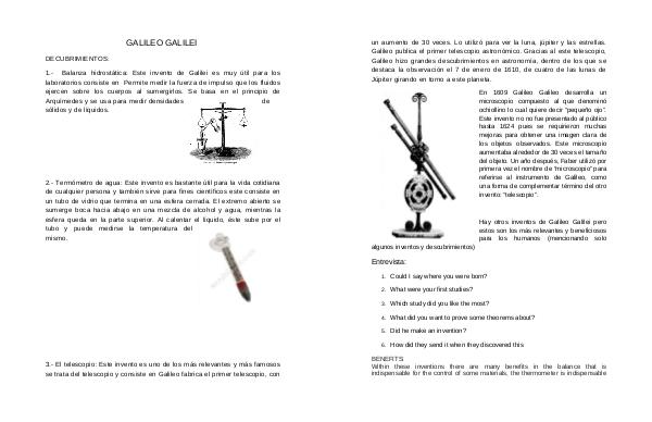 1.- Balanza hidrostática: Este invento de Galilei es muy útil para los