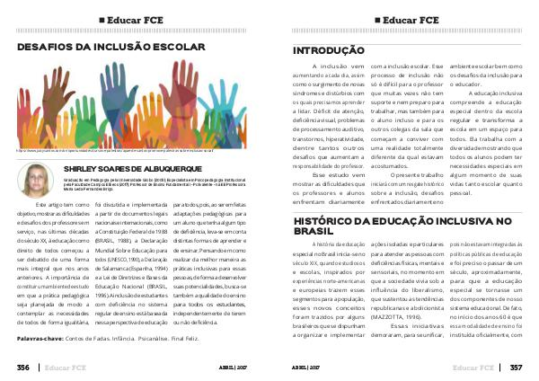 O presente trabalho iniciará com um resgate histórico sobre a inclusão, desafios enfrentados diariamente no ambiente escolar bem como os desafios da inclusão para o educador.