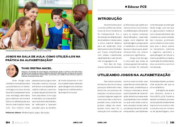 Palavras-chave: Alfabetização; Jogos; Educação.