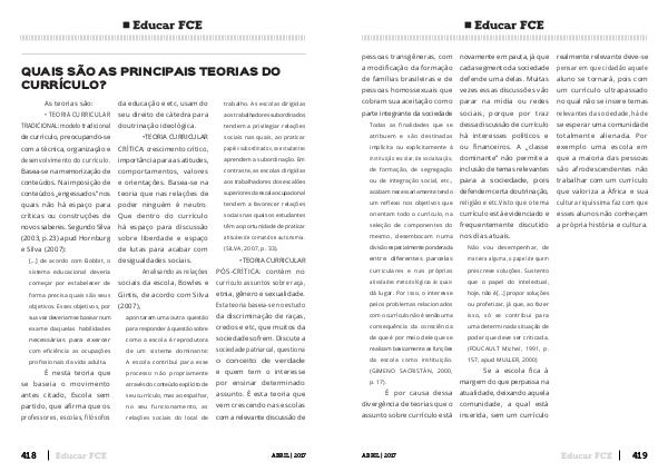 É por causa dessa divergência de teorias que o assunto sobre currículo está novamente em pauta, já que cada segmento da sociedade defende uma delas. Muitas vezes essas discussões vão parar na mídia ou redes sociais, porque por traz dessa discussão de currículo há interesses políticos e ou financeiros. A „ classe dominante” não permite a inclusão de temas relevantes para a sociedade, pois defendem certa doutrinação, religião e etc. Visto que o tema currículo está evidenciado e frequentemente discutido nos dias atuais.