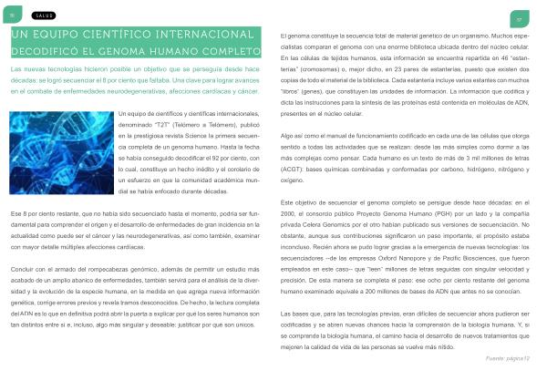 Este objetivo de secuenciar el genoma completo se persigue desde hace décadas : en el 2000 , el consorcio público Proyecto Genoma Humano ( PGH ) por un lado y la compañía privada Celera Genomics por el otro habían publicado sus versiones de secuenciación . No obstante , aunque sus contribuciones significaron un paso importante , el propósito estaba inconcluso . Recién ahora se pudo lograr gracias a la emergencia de nuevas tecnologías : los secuenciadores --de las empresas Oxford Nanopore y de Pacific Biosciences , que fueron empleados en este caso-- que “ leen ” millones de letras seguidas con singular velocidad y precisión . De esta manera se completa el paso : ese ocho por ciento restante del genoma humano examinado equivale a 200 millones de bases de ADN que antes no se conocían .