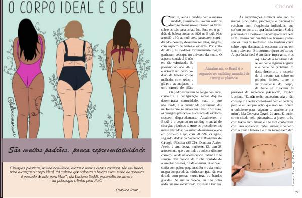 para alcançar o corpo ideal. “A cultura que valoriza a beleza e tem medo da gordura