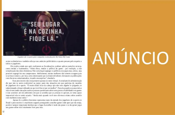 Jogadora de e-sports para campanha realizada pela My Name My Game