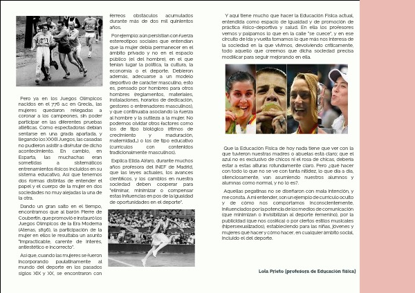 Explica Elida Alfaro, durante muchos años profesora del INEF de Madrid, que las leyes actuales, los avances científicos, y los cambios en nuestra sociedad deben cooperar para “eliminar, minimizar o compensar estas influencias en pos de la igualdad de oportunidades en el deporte”.