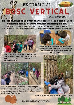 Els i les alumnes de 2nB vam anar d ’ excursió el 18 d ’ abril al Bosc Vertical ( Dosrius ) a fer una activitat sensorial pel bosc .