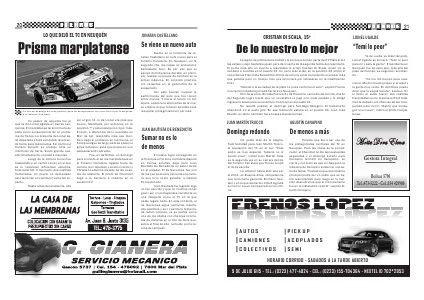 “ No me dio tiempo para reaccionar. Me dio miedo porque vi el talud y la gente muy cerca. En definitiva puedo decir que la saqué barata”, sostuvo. En lo físico el saldo fueron dos costillas fracturadas y en lo material el Ford totalmente dañado, sin chances de ser recuperado para Junín:“ Habrá que conseguir uno nuevo”, indicó el piloto marplatense.