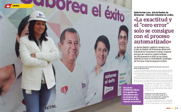 La revista Gestión Logística conversó con la jefa de Gestión de Almacenes( Dirección Industrial) de Corporación Lindley, empresa peruana de consumo masivo fundada en 1910( creadora en 1935 de Inca Kola), además de socio y embotellador autorizado de The Coca-Cola Company en el Perú.