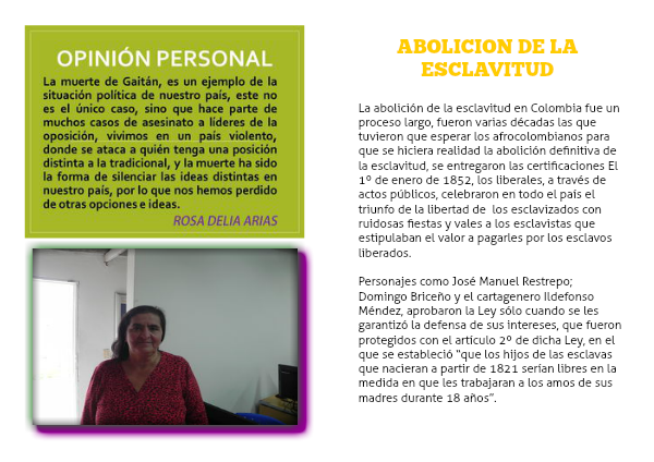 La abolición de la esclavitud en Colombia fue un proceso largo, fueron varias décadas las que tuvieron que esperar los afrocolombianos para que se hiciera realidad la abolición definitiva de la esclavitud, se entregaron las certificaciones El 1º de enero de 1852, los liberales, a través de actos públicos, celebraron en todo el país el triunfo de la libertad de los esclavizados con ruidosas fiestas y vales a los esclavistas que estipulaban el valor a pagarles por los esclavos liberados.