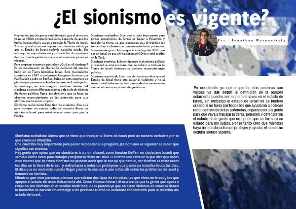 En conclusión yo opino que las dos posturas son válidas ya que según la definición de la palabra solamente puedes ser sionista si vives en el estado de Israel, sin embargo el estado de Israel no se hubiera creado si no fuera por todos los que ayudaron a obtener reconocimiento de las potencias, organizaron a la gente para que vaya a trabajar la tierra, pelearon y defendieron el estado de la gente que no quería que se formara un estado para los judíos. Por lo tanto creo que mientras haya un estado judío que proteger y ayudar, el sionismo seguirá siendo vigente.