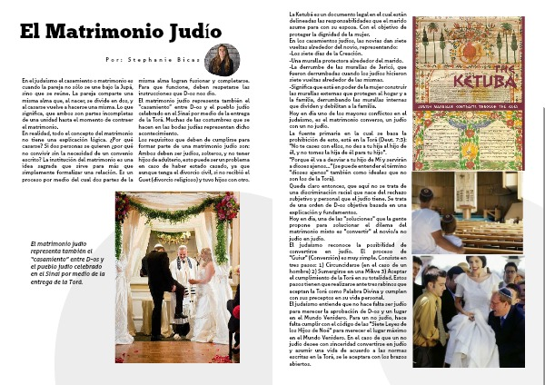 Los requisitos que deben de cumplirse para formar parte de una matrimonio judío son: Ambos deben ser judíos, solteros, y no tener hijos de adulterio, esto puede ser un problema en caso de haber estado casado, ya que aunque tenga el divorcio civil, si no recibió el Guet (divorcio religioso) y tuvo hijos con otro.