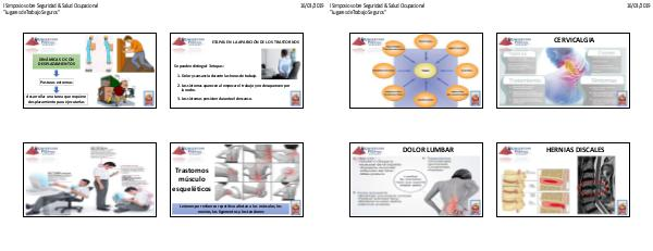 I Simposio sobre Seguridad & Salud Ocupacional "Lugares deTrabajo Seguros" 16/03/2019 CERVICALGIA DOLOR LUMBAR HERNIAS DISCALES