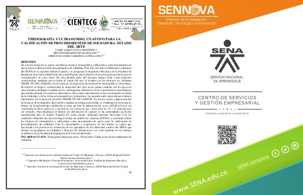 PALABRAS CLAVE: Termografía infrarroja activa, Ultrasonido, Calificación de procedimientos de