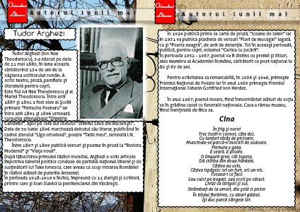 Tudor Arghezi (Ion Nae Theodorescu), s-a născut pe data de 21 mai 1880, în luna aceasta sărbătorind 134 de ani de la năşterea scriitorului român. A scris: teatru, proză, pamflete şi literatură pentru copii.