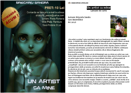 „Un artist ca mine” este rezultatul unei voci insistente din adâncul minţii mele. A răsărit din nimic şi s-a dezvoltat inimaginabil de rapid. Fiind o artistă la rându-mi, nu mi-a fost atât de dificil să descriu în mici fragmente cum sau ce înseamnă efectiv să trăieşti în pielea unui artist. Aşadar, pentru iubitorii lecturilor electrizante, şocante şi emoţionante vă invit să citiţi în continuare câteva detalii privind cartea per ansamblu cât şi câteva fragmente din interiorul acesteia.