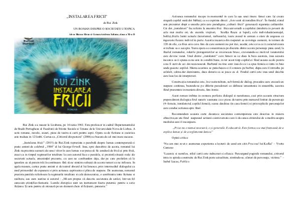 intra in spirala construita de Rui Zink peste actualitate, simtindu-se, alaturi de personaje, victima.” –