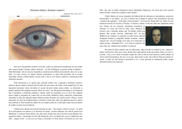 Sunt adolescent și, în opinia mea, destinul cărților este o oglindă a destinului omenirii,