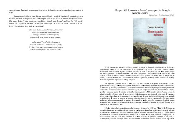 pierdut- asta este creaţia de debut a scriitorului Cezar Amariei, „Zilele noastre mărunte”, care a redat în