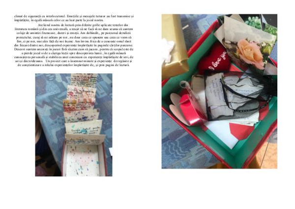 de conștientizare a rolului experiențelor împărtășite de,, și prin pagini de lectură.