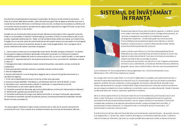 generale, studiind: franceza, matematica, istoria, geografia, arte/muzica, educație fizică, educație civica,