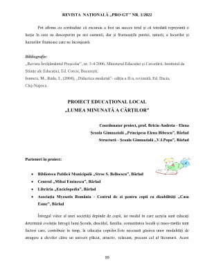 PROIECT EDUCAȚIONAL LOCAL „ LUMEA MINUNATĂ A CĂRȚILOR ”