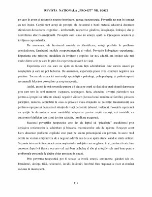 pe care le avem şi resursele noastre interioare , adesea necunoscute . Poveştile ne pun în contact cu noi înşine . Copiii sunt atraşi de poveşti , ele devenind o bună metodă educativă deoarece stimulează dezvoltarea cognitive - intelectuală , respective gândirea , imaginaţia , limbajul , dar şi dezvoltarea afectiv-emoţională . Poveştile sunt surse de emoţii , ajută la înţelegerea acestora şi învăţarea exprimăriilor .